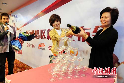 中新網(wǎng)福州4月13日電(沈靜)“想唱就唱,我最閃亮”2010年快樂(lè)男聲福州唱區(qū)4月13日啟動(dòng),成為全國(guó)15個(gè)地面唱區(qū)中第一個(gè)啟動(dòng)的唱區(qū),新聞發(fā)布會(huì)上,“快樂(lè)女生”許飛到場(chǎng)助陣。