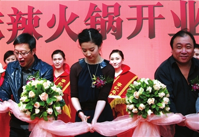 據(jù)悉,朝陽門外悠唐廣場的這家店也是寧記火鍋北京首家分店。據(jù)業(yè)內(nèi)人士透露,這家火鍋店的投資人除了三大導(dǎo)演外,還有范冰冰、黃曉明和舒淇等幾個大明星。這幾位因檔期錯不開,沒能前來出席昨天的剪彩儀式,不過他們也送來了對嘉賓的祝福和對自己新店的祝愿。由于是港式火鍋店開業(yè),所以開業(yè)儀式都依足了傳統(tǒng),廣場外眾明星嘉賓剪彩后,更有熱鬧的舞獅表演。許多逛街的白領(lǐng),突然看到眾多明星出現(xiàn),大家一擁而上,拿起手機一陣狂拍,場面十分混亂。