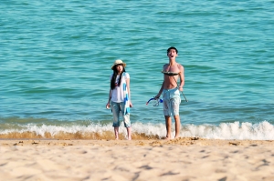 日前,被譽(yù)為“山寨版《流星花園》”的《流星雨》在廈門某酒店拍攝了海邊度假野炊的群戲。四位男主角張翰、俞灝明、朱梓驍和魏晨與兩位女主角鄭爽、彭?xiàng)钜灰滑F(xiàn)身拍攝。不過(guò),從最新曝光的劇照看來(lái),張翰與鄭爽(下圖)的海灘嬉戲戲看不出有任何的富貴氣,反倒更像是小孩子之間的“過(guò)家家”游戲。不過(guò),張翰從海水中走出的濕身照,還是能看到他為這個(gè)角色鍛煉出來(lái)的一點(diǎn)點(diǎn)腹肌。