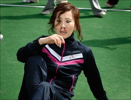 據(jù)攝制組介紹,李惠英扔的球狠狠地打在金南珠的額頭上,發(fā)出了啪啪的響聲。金南珠和李惠英奮不顧身的精神和細(xì)膩的表情演技受到了在場(chǎng)人們的鼓掌喝采。