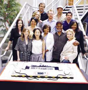 描寫醫(yī)務(wù)人員生活的熱門美劇《實習(xí)醫(yī)生格蕾》日前完成了第100集的拍攝工作。劇組在洛杉磯的片場舉辦了一個慶祝派對,并特意準(zhǔn)備了一個帶有“聽診器”、 “手術(shù)刀”等圖案的大蛋糕。包括帕特里克·德姆西、桑德拉·歐、凱瑟琳·海格爾(前排右一)等主演均到場留下了“全家福”。