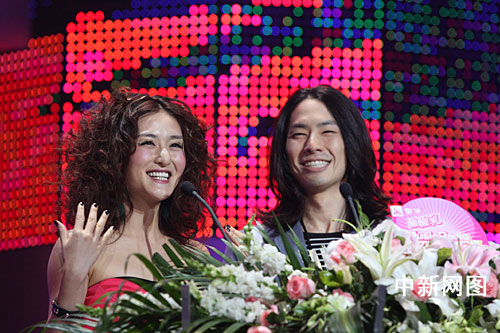 中新網(wǎng)4月27日電 (李季) 4月26日晚,MusicRadio中國(guó)TOP排行榜頒獎(jiǎng)晚會(huì)在工人體育館開幕。張杰與謝娜同臺(tái)亮相,會(huì)后張杰在接受記者采訪時(shí),大贊謝娜“很漂亮”、“全場(chǎng)最亮眼”。