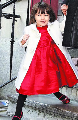 蘇瑞常穿一雙金色娃娃鞋,這雙鞋出自法國知名童裝品牌“Bonpoint”,要價230美元。但凱蒂自己卻不求奢華,75美元的黑白格子風衣她穿得很開心,阿湯哥的舊牛仔褲更是連穿好幾周,意外帶動流行。