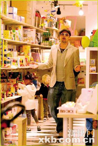 上周末,布拉德·皮特帶著兩個(gè)女兒——2歲半的希洛和4歲的扎哈拉在華盛頓購(gòu)物,度過(guò)了溫馨的時(shí)光。布拉德·皮特頭戴報(bào)童帽,身穿西服搭配牛仔褲,帥氣十足。兩個(gè)女兒都戴著墨鏡,酷酷的、可愛(ài)的模樣搶足了老爸的風(fēng)頭?赡苁遣幌胱屌畠涸獾矫襟w的打擾,布拉德·皮特沖著拍照的記者攤手,一臉無(wú)奈。兩個(gè)小家伙的媽媽安吉麗娜·茱莉此時(shí)正忙于拍攝電影《特工鹽》。想必,這一段時(shí)間,帶孩子的重任就由皮特一人承擔(dān)了。