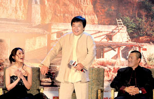 一開場(chǎng),導(dǎo)演丁晟就為全場(chǎng)定下了基調(diào):“為了能跟大哥合作,我看了大哥的每一部電影,大哥……”一連串的“大哥”,叫得坐在一旁的成龍樂不可支。隨后,“小將”王力宏、劉承俊、女主角林鵬等輪流發(fā)言。