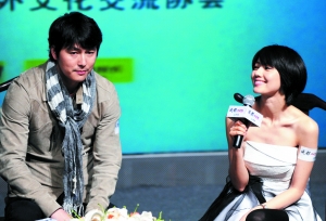 剛在亞洲電影大獎(jiǎng)中奪得“最佳男配角”的韓星鄭宇成,日前偕高圓圓、“超女”譚維維等人在北京出席電影《成都,我愛(ài)你》記者會(huì)。