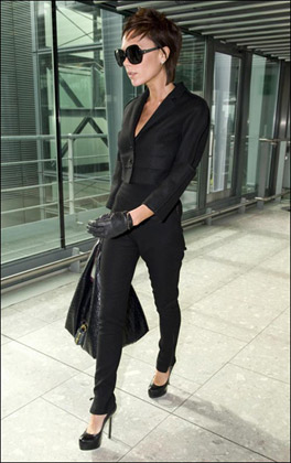 維多利亞·貝克漢姆前幾日還是一襲白衣出現(xiàn)在公眾的面前,昨天(2月11日)就換上了一身黑衣服出現(xiàn)了,這次還真是黑的徹底,黑頭發(fā),黑墨鏡,黑衣服,黑褲子,黑手套,黑書包加黑面,一黑到底。手腕上的金手鐲提升亮點,但是真是黑啊。