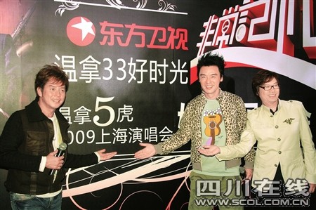 昨日,譚詠麟鐘鎮(zhèn)濤現(xiàn)身上海為“溫拿五虎2009上海演唱會”宣傳,譚校長無意中泄密——