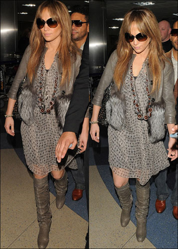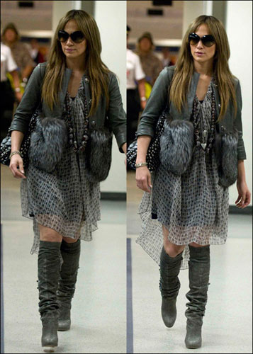 詹妮弗·洛佩茲實(shí)在是太漂亮了!結(jié)束了自己的日本宣傳活動(dòng),匆匆回國(guó)的詹妮弗·洛佩茲在機(jī)場(chǎng)大大的高貴了一把,灰白黑色的雪紡紗連身長(zhǎng)裙浪漫飄逸,外面為了保暖配了皮質(zhì)外套,但是袖口處的毛毛設(shè)計(jì)極致奢華高貴,大釘子書包混搭效果明顯,大配飾項(xiàng)鏈真是好看~~小編覺得喜歡這樣浪漫奢華的MM們一定要學(xué)習(xí)學(xué)習(xí),保證是回頭率300%。