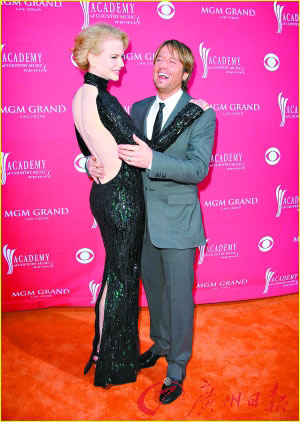 當(dāng)天,頒獎(jiǎng)禮上星光熠熠,嘉賓詹妮弗·洛芙·休伊特一襲白色長(zhǎng)裙登臺(tái),模特瑪麗莎同樣也選擇了白裙。美國(guó)青春女歌手麥莉·塞勒斯、奧斯卡影帝吉米·福克斯、男星馬修·麥康納等都是當(dāng)天的頒獎(jiǎng)嘉賓。不過(guò),在當(dāng)天的紅地毯上的亮點(diǎn)還是妮可·基德曼夫婦。妮可的老公、澳大利亞著名鄉(xiāng)村音樂(lè)歌手凱斯·厄本是當(dāng)天的表演嘉賓,而妮可一身大露背裝更是搶走了頒獎(jiǎng)禮的不少風(fēng)頭。(星 星)
