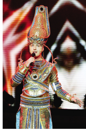 昨晚,第三度來滬會(huì)見老朋友的維塔斯,顯然想用更多新招數(shù)來回饋觀眾。他想證明自己的“跨度”不僅體現(xiàn)在海豚音的聲調(diào)上,還能駕馭多種風(fēng)格的歌曲和舞臺(tái)表演。不過,無論是俄文版的中國歌曲《大海啊,母親》,還是用中文唱《青藏高原》,上海大舞臺(tái)的觀眾最熱烈的掌聲還是給了維塔斯的“招牌菜”——《星星》和《歌劇2》。