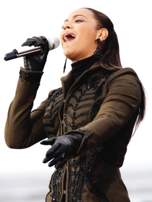 壓軸上場的格萊美得獎(jiǎng)女歌手碧昂斯以一曲《美麗的亞美利加》引發(fā)全場大合唱,嘹亮、激昂的歌聲在現(xiàn)場上空久久回蕩。
