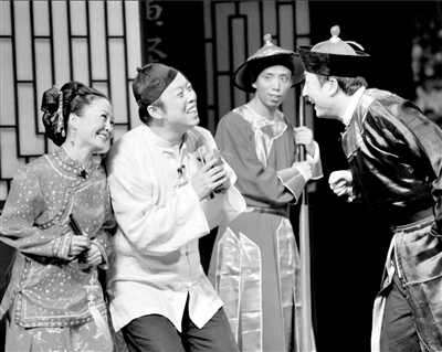 昨天,由相聲演員李志強(qiáng)、崔藝東、張凱主演的笑劇《我們的相聲瘋了》舉行了媒體見面會(huì)。該劇運(yùn)用了傳統(tǒng)相聲、小品、舞蹈、歌唱、魔術(shù)、打快板、吹嗩吶等多種表演形式,春節(jié)前曾在解放軍歌劇院試演了三場(chǎng),效果非常好。這出笑劇將于2月6日-9日在海淀劇院上演。