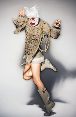 中新網(wǎng)2月24日電 Ella一直是S.H.E這3個女孩里最古靈精怪的,她在接受造型師陳孫華《孫華的想相》一書拍照時,幻化成白發(fā)、紅眼圈的個性貓女,特別的是她在BURBERRY的男性毛衣下,只套了白色罩衫和內(nèi)褲,連安全褲都沒穿,意外呈現(xiàn)個性化的性感。