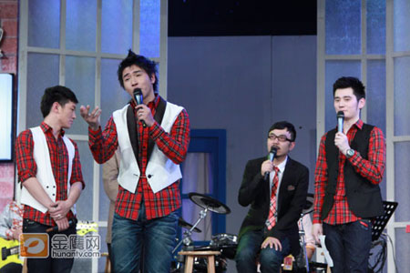 很少參加娛樂(lè)節(jié)目的當(dāng)代大詩(shī)人汪國(guó)真,近日做客《天天向上》。在汪國(guó)真的率領(lǐng)下,來(lái)自中港臺(tái)三大名校的“少年詩(shī)人”們現(xiàn)場(chǎng)耍帥,大秀“詩(shī)藝”,惹得臺(tái)下一干女生尖叫連連。連主持群的五位帥哥也不甘風(fēng)頭被搶?zhuān)浞謱⒏阈υ厝苋朐?shī)朗誦中,使得全場(chǎng)氣氛不斷高漲。此外,今天還是汪涵36歲生日,全場(chǎng)齊唱生日快樂(lè),一片其樂(lè)融融。