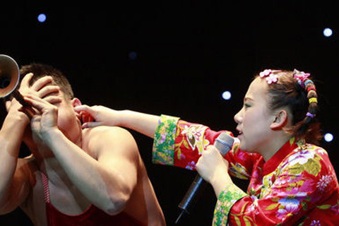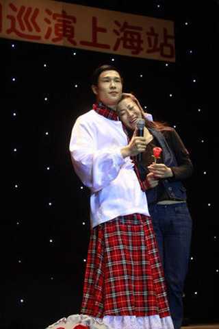 中新網(wǎng)4月27日電 《劉老根大舞臺(tái)》小沈陽(yáng)笑轉(zhuǎn)2009,全國(guó)巡演上海站昨晚(26日)在上海大舞臺(tái)(上海體育館)拉開序幕,王金龍和毛毛(丫蛋)夫婦同臺(tái)獻(xiàn)藝,毛毛上演了野蠻老婆的戲碼。丫蛋以野蠻的招數(shù)著稱,這次剛剛新婚不久的夫妻二人,給上海的觀眾朋友們來了個(gè)以外驚喜。觀眾的歡呼聲讓整個(gè)體育館達(dá)到了高潮。