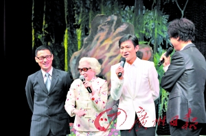 紅線女一出場,全場觀眾即報以熱烈的掌聲。嘉賓司儀、香港無線總經(jīng)理陳志云在問及紅線女為什么要拍此動畫片時?紅線女老師說:“我現(xiàn)在的年紀,形象不適合出現(xiàn)在舞臺,我想我的聲音還可以繼續(xù)為大眾服務。于是我想到卡通片。而且這部劇很不錯,有故事內(nèi)容,提倡和諧,和諧才會好。”紅線女神采奕奕,妙語連珠,觀眾反映看不出她已80多歲。當被問到她是如何保持聲線的?“女姐”坦言是媽媽給的!芭 ”還現(xiàn)場演唱了新作粵曲《水鄉(xiāng)橋韻》,香港觀眾大贊她寶刀未老。