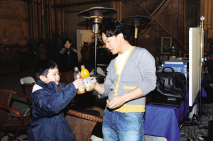 現(xiàn)場有一位“乘機潛入”的小歌迷,慕名來看偶像的演出。陳奕迅是娛樂圈中公認(rèn)的好父親,在家里對5歲的女兒寵愛有加,在外與別的小孩也能打成一片。在廣告拍攝過程中,陳奕迅突然走到這個小歌迷身邊,拿起手中的飲料和小歌迷碰杯,并與他一起合影,一大一小倆“頑童”的溫馨場面令在場人動容不已!痿斘撵o