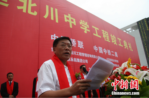 由中國僑聯(lián)援建的新北川中學17日在北川縣永昌鎮(zhèn)舉行了竣工典禮,林軍在典禮上說,中國僑聯(lián)和各援建單位沒有辜負全國人民的厚望,沒有辜負廣大歸僑僑眷、海外僑胞、港澳臺同胞的重托,將質(zhì)量一流、安全堅固、環(huán)境優(yōu)美、和諧溫馨的新北川中學呈獻給北川人民。