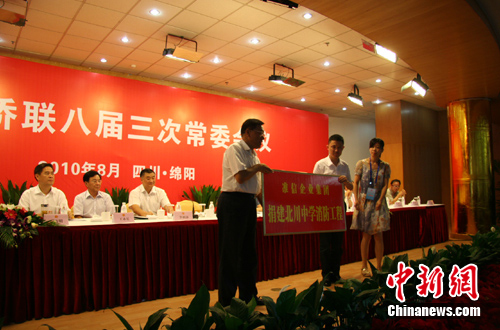 中新網(wǎng)綿陽8月17日電 (南若然)中國僑聯(lián)八屆三次常委會17日在四川綿陽召開,會上舉行了愛心企業(yè)和單位向援建北川中學工程捐贈儀式。