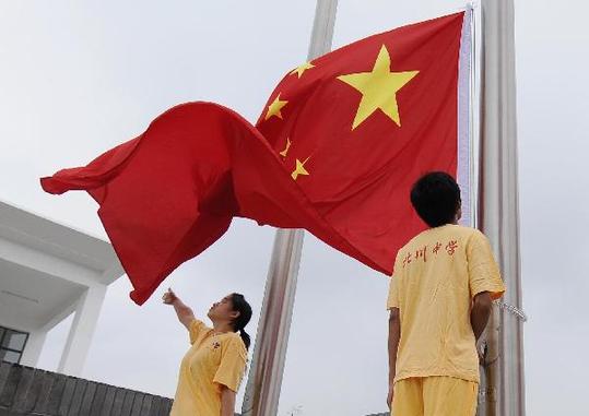 北川中學(xué)的重建規(guī)劃用地原為農(nóng)田,尚在生長的油菜郁郁蔥蔥。場(chǎng)地不平,地面落差較大,要找個(gè)安營扎寨的地方都頗費(fèi)周折。北川新縣城其他重點(diǎn)基礎(chǔ)設(shè)施建設(shè)項(xiàng)目隨后全面開工,水、電、道路不通、圖紙不到位、建材緊張、勞動(dòng)力緊缺,7.2萬平方米的建筑面積及10棟單體工程和室外配套工程還需同時(shí)交驗(yàn)……一切比想象中的困難得多。中鐵二局項(xiàng)目部發(fā)出錚錚誓言:“無論多么艱難,也要按期優(yōu)質(zhì)建好北川中學(xué)!”