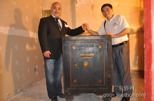 9月17日當(dāng)?shù)貢r(shí)間下午一點(diǎn),甫抵達(dá)舊金山,訪問(wèn)團(tuán)在旅美陽(yáng)和總會(huì)館主席盧偉棠、旅美人和會(huì)館主席彭書城、三邑總會(huì)館主席暨展圖等僑領(lǐng)的陪同下,馬不停蹄地拜訪了旅美人和會(huì)館、旅美陽(yáng)和會(huì)館、五洲致公堂,與僑領(lǐng)座談交流,宣傳推介廣東華僑博物館,并考察會(huì)館建筑、歷史圖片和文獻(xiàn)。五洲致公堂總主席周國(guó)祥表示,今后要帶社團(tuán)的年輕一代參觀廣東華僑博物館,學(xué)習(xí)了解華僑歷史,并希望該會(huì)收藏的孫中山先生當(dāng)年在舊金山從事革命活動(dòng)使用過(guò)的椅子、辦公臺(tái)和籌款用的保險(xiǎn)柜、以及一些較有歷史價(jià)值的圖片、實(shí)物等可以在廣東華僑博物館展示。陽(yáng)和總會(huì)館劉應(yīng)同顧問(wèn)當(dāng)場(chǎng)捐贈(zèng)了一張其父親珍藏1945年董必武隨聯(lián)合國(guó)代表團(tuán)到訪舊金山的珍貴照片。其他僑領(lǐng)們紛紛表示,會(huì)積極協(xié)助廣東華僑博物館收集華僑實(shí)物和資料。