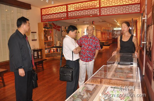 18日下午,訪問團先后拜訪了南加州傳統(tǒng)社團岡州會館、寧陽會館和寧僑公會,王明惠詳細(xì)介紹了廣東華僑博物館的建設(shè)發(fā)展情況和廣東華僑歷史陳列主題展,呼吁洛杉磯華僑華人積極向廣東華僑博物館捐贈文物文獻(xiàn)。此外,訪問團拜訪了美國洛杉磯華人歷史學(xué)會,與該會交流探討在廣東華僑博物館聯(lián)合舉辦洛杉磯華僑歷史展覽的議題。訪問團還參觀考察了華美博物館,聽取館長黃寶蓮介紹華僑歷史展覽、陳展設(shè)計、文物保護等方面的經(jīng)驗,就進一步加強兩館間的合作深入交流。晚上,中華會館和寧陽會館宴請訪問團一行,中華會館主席陳建邦、岡州會館董事長蔣石穩(wěn)、寧陽會館主席黃偉林等出席宴會。