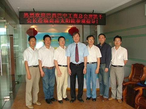 中新網(wǎng)9月16日電 9月9日,巴西巴中工商總會(huì)會(huì)長(zhǎng)唐凱千先生來(lái)到無(wú)錫,在無(wú)錫市僑辦、惠山區(qū)僑辦工作人員的陪同下,考察了無(wú)錫尚品太陽(yáng)能電力科技有限公司、江蘇玉龍鋼管股份有限公司,并與公司領(lǐng)導(dǎo)就貿(mào)易與合作等事宜進(jìn)行了洽談。