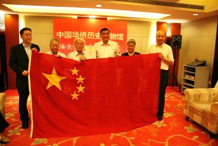 捐贈儀式上,李祖沛充分肯定了衣聯(lián)會自1933年成立以來,為團結(jié)廣大旅美僑胞,促進僑胞融入主流社會,增進中美兩國民間交往所作出的貢獻。他說,衣聯(lián)會秉承中華民族優(yōu)良傳統(tǒng),熱愛居住國,熱愛祖(籍)國。此次恰逢新中國成立六十周年之際,將1949年紐約華埠升起的第一面五星紅旗帶回國內(nèi),捐贈給中國華僑歷史博物館,不但為中國華僑歷史博物館增添極有價值館藏品,更是體現(xiàn)出濃濃愛國情誼。