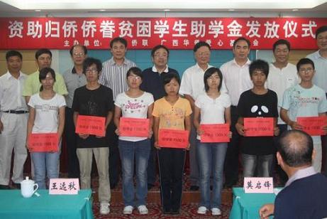 中新網9月21日電 9月15日,廣西僑聯(lián)、廣西華僑愛心基金會舉行資助歸僑僑眷貧困學生助學金發(fā)放儀式,廣西自治區(qū)歸僑僑眷貧困大學生、高中生214名獲得資助,助學金總金額30.1萬元。這是廣西自治區(qū)僑聯(lián)連續(xù)資助全區(qū)歸僑僑眷貧困生的第三年,也是廣西華僑愛心基金會資助全廣西自治區(qū)歸僑僑眷貧困生的第一年。