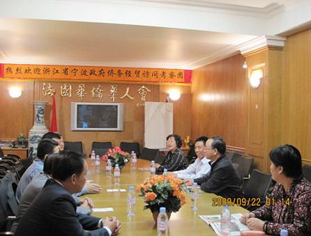 在法國(guó)期間,訪問團(tuán)拜訪了法國(guó)華僑華人會(huì),F(xiàn)任主席陳勝武及副主席張過祥、陳其躍等負(fù)責(zé)人,熱情接待了訪問團(tuán),相互進(jìn)行了座談;訪問團(tuán)還參觀了位于巴黎市中心四區(qū)的會(huì)所、文化中心,及中華文化學(xué)校。通過座談參觀,訪問團(tuán)了解到,近年來(lái),隨著中國(guó)國(guó)力迅速增長(zhǎng),旅法華人地位不斷提高,華人也在改變過去不關(guān)心政治的慣例,正在努力融入當(dāng)?shù)刂髁魃鐣?huì)。訪問團(tuán)與法國(guó)華僑華人會(huì)互贈(zèng)了禮品;法國(guó)歐華歷史學(xué)會(huì)會(huì)長(zhǎng)葉星球還向訪問團(tuán)贈(zèng)送了其撰寫的《法國(guó)華人三百年》一書。
