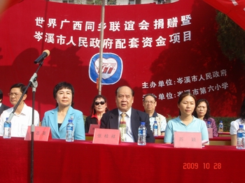 廣西自治區(qū)僑辦副主任鐘志英、副處長藍勝,世界廣西同鄉(xiāng)聯(lián)誼會主席張桂祥等6位嘉賓,岑溪市黨委、政府及教育局、僑辦等相關部門領導出席了活動。