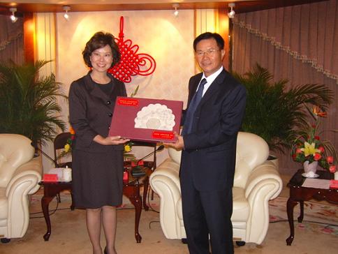金秋十月的鮀城,山青水秀,風(fēng)光迷人,給首次蒞汕的趙小蘭女士一行留下美好的印象。10月23日晚,趙小蘭接受汕頭市委副書(shū)記鄧大榮、副市長(zhǎng)周鎮(zhèn)松等市領(lǐng)導(dǎo)的會(huì)見(jiàn)時(shí),稱汕頭是一座美麗的海濱城市,從短短一天的參觀中,可以看出汕頭的工業(yè)非常發(fā)達(dá),環(huán)境保護(hù)工作做得非常好,希望汕頭發(fā)展得越來(lái)越好。