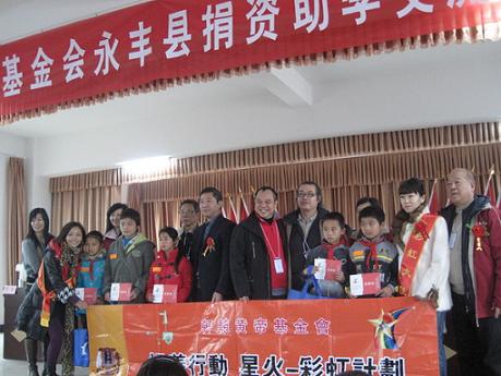 香港龍山基金會屬于非營利性慈善組織,由江西省港澳區(qū)政協(xié)委員鄧國容先生會同有識之士創(chuàng)建,多年來該基金會一直關(guān)注永豐縣教育事業(yè)、關(guān)注永豐縣貧困學(xué)生。星火——彩虹計(jì)劃是由龍山基金會和軒轅黃帝基金會聯(lián)手創(chuàng)辦的助學(xué)扶貧計(jì)劃,主要是扶持江西省革命老區(qū)、少數(shù)民族地區(qū)及貧困山區(qū)的文教事業(yè)。自2004年起,星火——彩虹計(jì)劃已經(jīng)組織了多次“贛港心連心”江西訪問交流團(tuán)來該縣開展捐資助學(xué)活動。累計(jì)已援建龍岡畬族鄉(xiāng)中心小學(xué)教學(xué)樓、瑤田鎮(zhèn)三灣小學(xué)軒轅黃帝教學(xué)樓、八江鄉(xiāng)高家小學(xué)軒轅黃帝教學(xué)樓、潭頭鄉(xiāng)楊梅江小學(xué)白求恩教學(xué)樓,資助金額42萬元;資助全縣21個(gè)鄉(xiāng)鎮(zhèn)貧困學(xué)生400人次,資助金額12萬元;捐助教學(xué)用品及學(xué)生學(xué)習(xí)、生活用品折合人民幣達(dá)5萬多元。