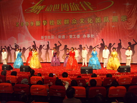 中新網(wǎng)12月2日電 據(jù)上海市僑辦消息,11月25日,為宣傳世博、了解世博、走進(jìn)世博,進(jìn)一步營造社區(qū)迎世博的熱烈氛圍,進(jìn)一步構(gòu)建健康、和諧的城區(qū)環(huán)境和城區(qū)活力,上海市長寧區(qū)新華社區(qū)在上海影城隆重舉辦了“舞動(dòng)世博旋律”——2009新華社區(qū)群眾團(tuán)隊(duì)展示活動(dòng)。