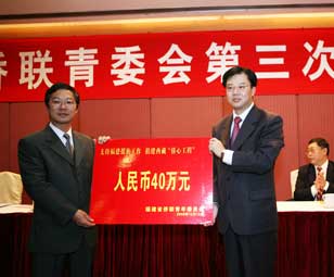會(huì)上,還舉行了福建省僑聯(lián)青委會(huì)向省對(duì)口辦捐贈(zèng)40萬(wàn)元援藏“僑心工程”善款的現(xiàn)場(chǎng)捐贈(zèng)儀式。