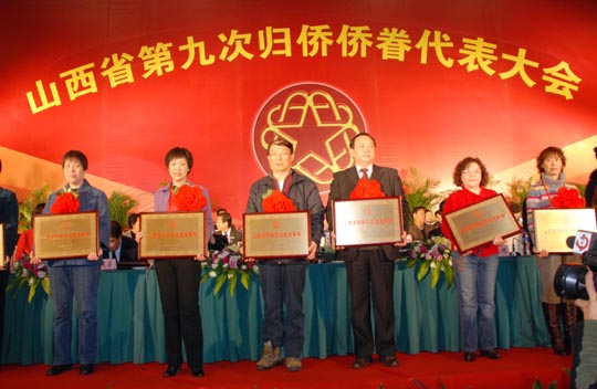 在開幕式上,張寶順、王君、薛延忠和王永樂對山西省外事僑務辦公室、山西省僑聯(lián)聯(lián)合表彰的四十九名全省歸僑僑眷先進個人,山西省僑聯(lián)表彰的十個全省僑聯(lián)系統(tǒng)先進集體和二十五名全省僑聯(lián)系統(tǒng)先進個人頒發(fā)獎狀。