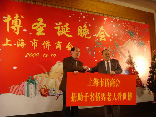 中新網(wǎng)12月24日電 據(jù)上海市僑辦消息,12月19日晚,上海市僑商會(huì)舉辦了圣誕聯(lián)誼晚會(huì)。會(huì)上,上海市僑辦主任崔明華和上海市僑商會(huì)常務(wù)副會(huì)長(zhǎng)屠海鳴為“上海市僑商會(huì)世博接待服務(wù)部”揭牌。上海市僑辦副主任劉建平、上海市僑商會(huì)副會(huì)長(zhǎng)盧國(guó)富在會(huì)上啟動(dòng)了“上海市僑商會(huì)捐助千名僑界老人看世博活動(dòng)”。