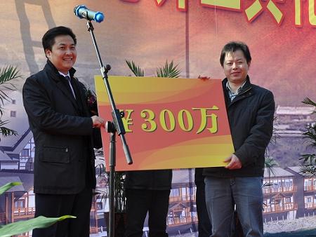 中新網(wǎng)12月31日電 據(jù)青田縣發(fā)展和改革局消息,12月28日,浙江省青田縣高市旅游接待中心舉行開工典禮。中國僑聯(lián)副主席、寧夏回族自治區(qū)僑聯(lián)主席、浙江省僑聯(lián)青年總會(huì)榮譽(yù)會(huì)長(zhǎng)朱奕龍為開工典禮剪彩,并為高市村新農(nóng)村建設(shè)個(gè)人捐贈(zèng)300萬元,青田縣領(lǐng)導(dǎo)王通林、楊雷、葉選君、陳海民、呂大德、舒志勇及縣相關(guān)職能部門代表參加了儀式。