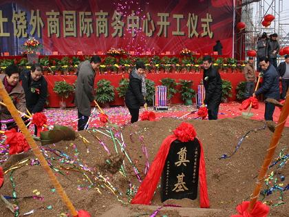 最后,由周錦宣布上饒外商國際商務(wù)中心正式開工,并為工程奠基,頓時(shí),鞭炮齊鳴、彩球飄舞、鑼鼓喧天、禮花漫天開放,整個(gè)典禮儀式氣氛達(dá)到了高潮。