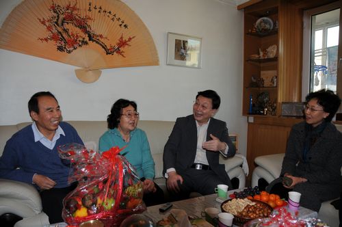 下午15時(shí)許,馬儒沛和國(guó)僑辦國(guó)內(nèi)司副司長(zhǎng)趙昆在內(nèi)蒙古自治區(qū)外僑辦副主任王毅,呼和浩特副市長(zhǎng)劉菊如、外僑辦主任孫青山的陪同下,來(lái)到蒙古歸僑、66歲的內(nèi)蒙古醫(yī)學(xué)院返聘教授張劍家中。