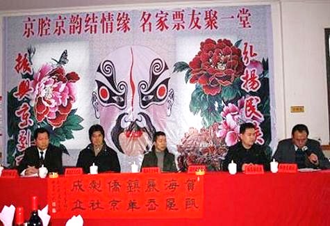 中午十一時,大會程序進行完畢,帷幕剛落,京劇的鑼鼓聲,琴聲齊聲啟鳴,將慶典活動推向高潮。精彩的京劇演唱表演開始,來自區(qū)、市、省和各地的41名京劇演唱名家一個接一個,一腔換一腔,腔腔調(diào)調(diào),鏗鏘有力,京劇唱腔交響著鑼鼓的強烈節(jié)奏,震撼了整個大廳,響徹王宅村僑聯(lián)活動中心的上空。