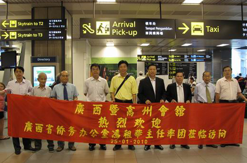 新、馬、泰慰問(wèn)團(tuán)訪問(wèn)了曼谷、吉隆坡、新加坡,先后拜訪了了泰國(guó)九屬會(huì)館、泰國(guó)隆發(fā)盛企業(yè)有限公司董事長(zhǎng)封家正、泰國(guó)廣西總會(huì)、馬來(lái)西亞廣西總會(huì)、馬來(lái)西亞前國(guó)會(huì)議長(zhǎng)曾永森、馬來(lái)西亞雪隆廣西會(huì)館、新加坡廣西暨高州會(huì)館、新加坡宗鄉(xiāng)會(huì)館聯(lián)合總會(huì)、新加坡中華總商會(huì)。在吉隆坡舉辦了“八桂摯友”海外迎春聯(lián)誼酒會(huì)。