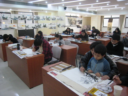 2009年12月5日由華僑青年、華僑子女、少數(shù)民族子女、困難家庭子女組成的首期山水畫班正式開班。雖然學(xué)生的水平參差不齊,而且年齡跨度很大,但經(jīng)過(guò)老師的因材施教和自己的勤奮刻苦,在兩個(gè)月內(nèi)都取得了很大的進(jìn)步。