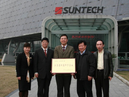 在無錫尚德太陽能電力有限公司,錢興榮一行聽取了該公司以及施正榮博士創(chuàng)業(yè)發(fā)展情況的介紹,并向公司頒發(fā)了國務院僑務辦公室授予的“全國百家明星僑資企業(yè)”獎牌和省僑辦授予的“江蘇省明星僑資企業(yè)”獎牌。
