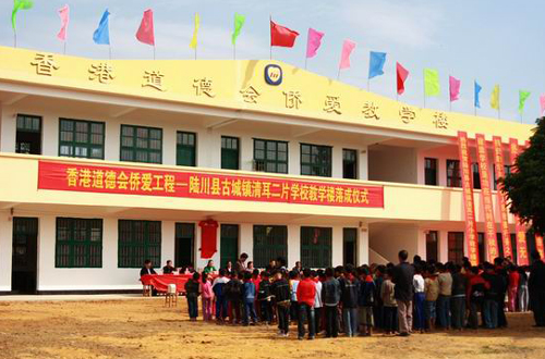 通過廣西自治區(qū)僑辦牽線搭橋,捐助支持廣西各項公益事業(yè)的僑社和慈善團(tuán)體中,香港道德會較為突出。香港道德會是香港有名的慈善機(jī)構(gòu),2009年先后在廣西欽州市欽南區(qū)新營村、賀州市八步區(qū)東南村、岑溪市地麻村、陸川縣清耳村等地,捐建4所小學(xué),捐贈總額達(dá)172萬元人民幣。這些受捐建的小學(xué)有個響亮的名字:“香港道德會僑愛教學(xué)樓”。