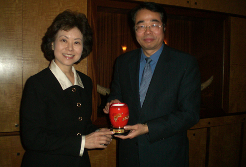 中新網(wǎng)3月2日電 2月28日中午,率“文化中國 四海同春”藝術(shù)團在美東地區(qū)訪演的國務(wù)院僑辦副主任許又聲在駐紐約總領(lǐng)事彭克玉及夫人陪同下,應(yīng)邀出席了前美國勞工部長趙小蘭及其父親趙錫成博士舉行的午宴。