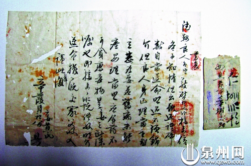 上圖為泉州市檔案館收藏的最早的僑批,系1911年十一月初八,一名晉江安海人的妻子寄給遠(yuǎn)在菲律賓的丈夫的“回批”(回信),信中還寫到將丈夫寄來的錢都用在了哪里!盎嘏笔莾S批的一種,由于是由故鄉(xiāng)人寄往海外的回信,所以目前國內(nèi)數(shù)量不多,更加珍貴。(葉舒雯 陳一妮)