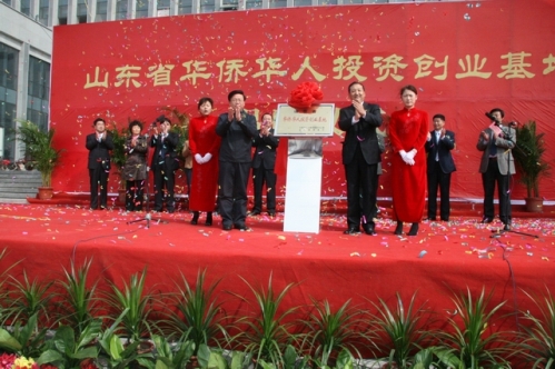 中新網(wǎng)4月26日電 據(jù)山東省僑辦網(wǎng)站消息,4月20日上午,山東省華僑華人投資創(chuàng)業(yè)基地在德州慶云縣揭牌。山東省僑辦黨組副書記、副主任史進,德州市副市長康志民,省商務(wù)廳開發(fā)區(qū)管理處處長張連峰等出席揭牌儀式。