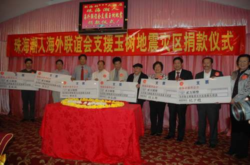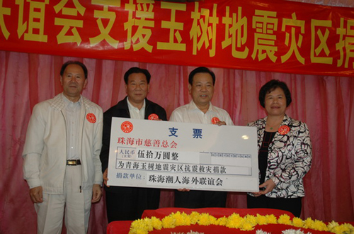 中新網(wǎng)4月30日電 據(jù)珠海僑務局消息,地震災情牽動著億萬中國人民的心,也受到珠海海外聯(lián)誼會的潮商們的高度關注。為積極支持玉樹的災后重建工作,繼08年汶川大地震該會捐資40萬元支持綿虒鎮(zhèn)涂禹山村重建格子巖組“僑心村”后,珠海潮人海外聯(lián)誼會又于4月27日舉辦現(xiàn)場捐款活動,呼吁珠海的廣大潮商伸出援手,募捐善款,幫助地震災區(qū)同胞,抗震救災、重建家園,為抗震救災行動貢獻一份力量。廣東省珠海市政協(xié)副主席、市委統(tǒng)戰(zhàn)部部長羅碧堅、市僑聯(lián)主席李清出席了捐贈儀式。